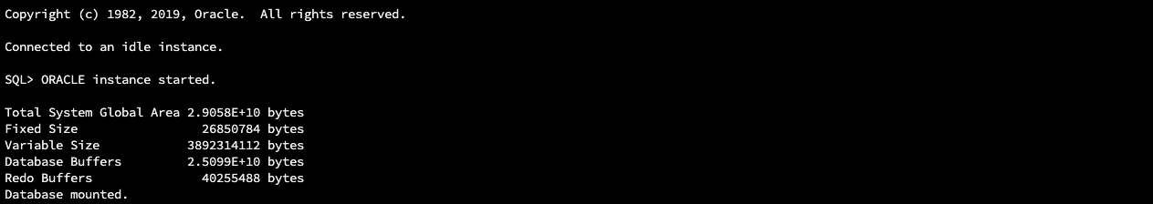 - (Connected to an idle instance -> ORACLE instance started. -> Database mounted.)