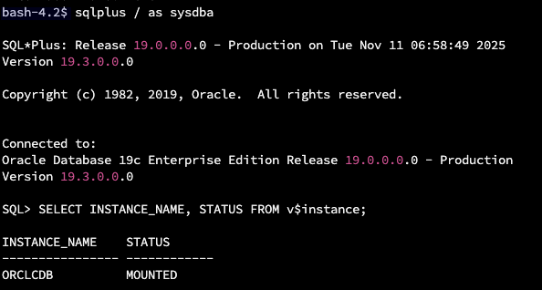 -- 3) CDB 열기 (MOUNTED인 경우)